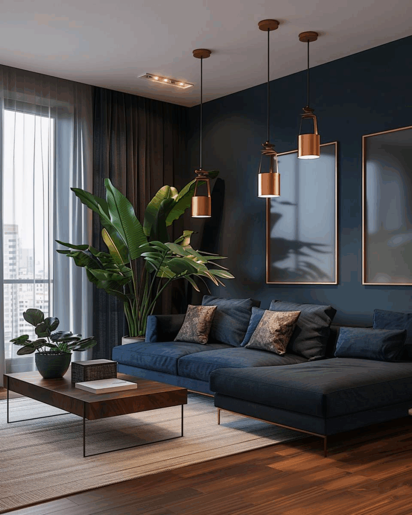 Wähle Kupfer zu dunklem Petrolblau, weil der metallische Glanz sofort Eleganz bringt. Mit dunklem Petrolblau wirkt Kupfer warm und stilvoll. Du erzeugst starke Kontraste und eine moderne Atmosphäre. Setze Akzente mit Accessoires oder Lampen.