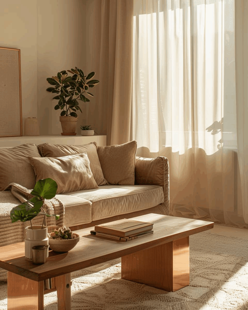 Wähle pudrige Beigetöne zu Kupfer, um einen ruhigen Kontrast zu schaffen. Naturmaterialien wie Leinen oder Holz passen dazu und bringen Wärme ins Zimmer. Wandfarben in sanftem Beige lassen Kupfer-Accessoires glänzen. Setze dabei auf matte Oberflächen für einen harmonischen Look.