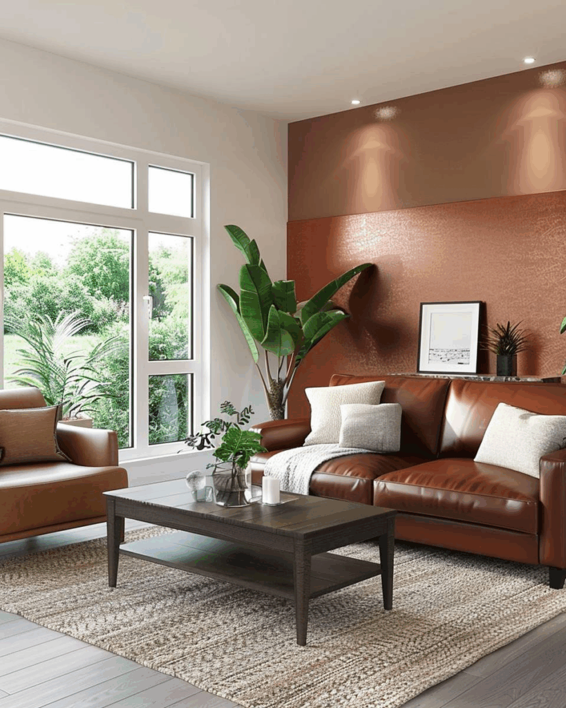 Gib Kupfer mit braunen Ledernuancen mehr Tiefe. Warme Braun- und Lederfarben wirken mit Kupfer erdig und harmonisch. Du setzt mit Echtleder, Kunstleder und Accessoires klare Akzente. Kombiniert schaffen diese Töne einen modernen und gemütlichen Look.