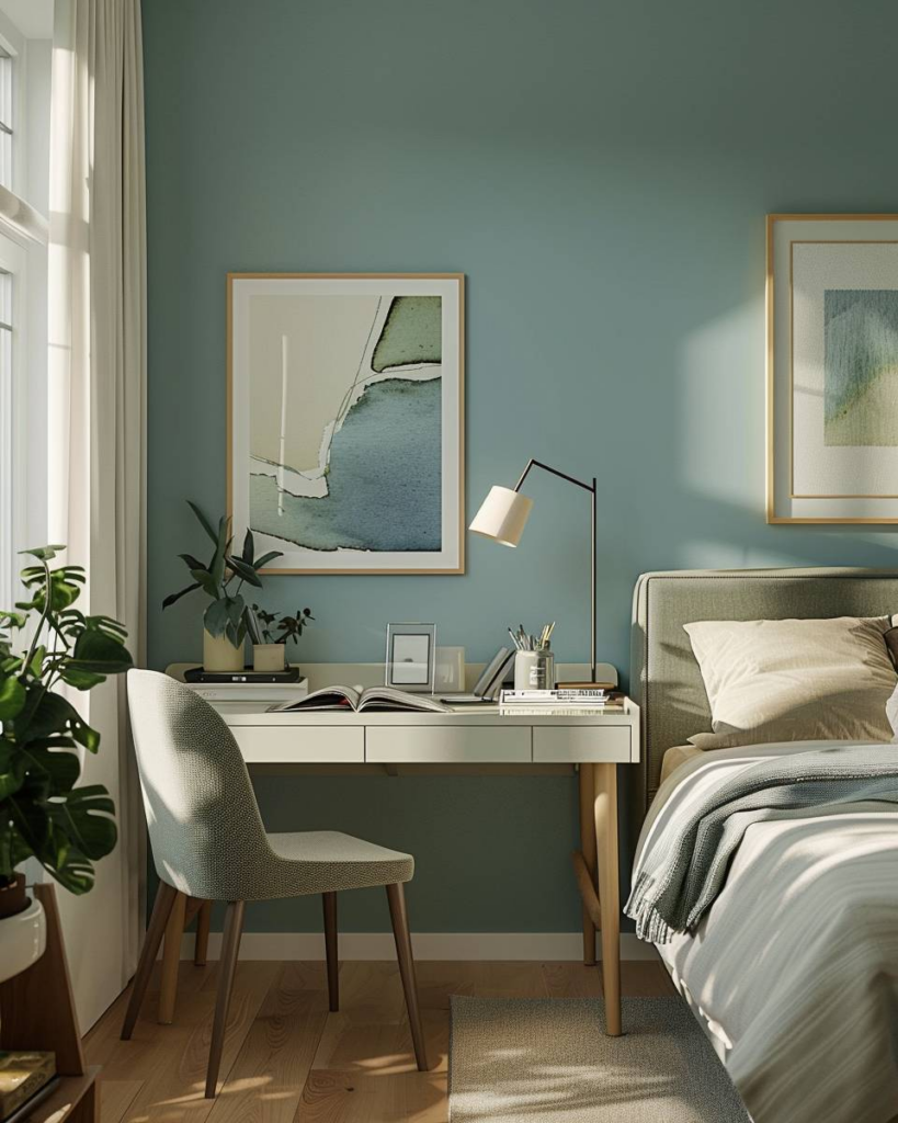Malen wir die Wände in blauen, grünen oder hellgrauen Tönen, fördern wir Ruhe. Diese Farben wirken entspannend und helfen dir, dich besser zu konzentrieren. Der Raum fühlt sich freundlich und einladend an, was Gästen und dir zugutekommt.