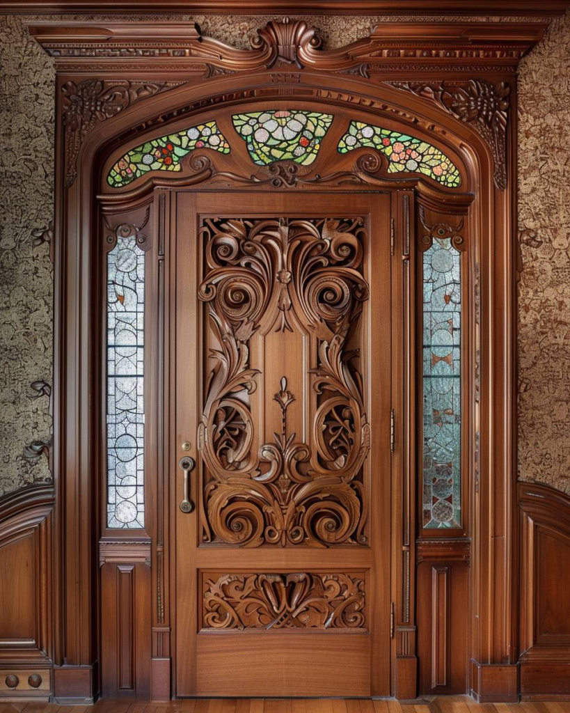 Verziere deine Türen mit feinen Schnitzereien. Holz ist das ideale Material. Wir nutzen florale Muster, sanfte Linien und schwungvolle Ornamente im Art Nouveau-Stil. So wirkt dein Eingang edel und einzigartig. Eine passende Oberflächenbehandlung schützt und betont die Details.