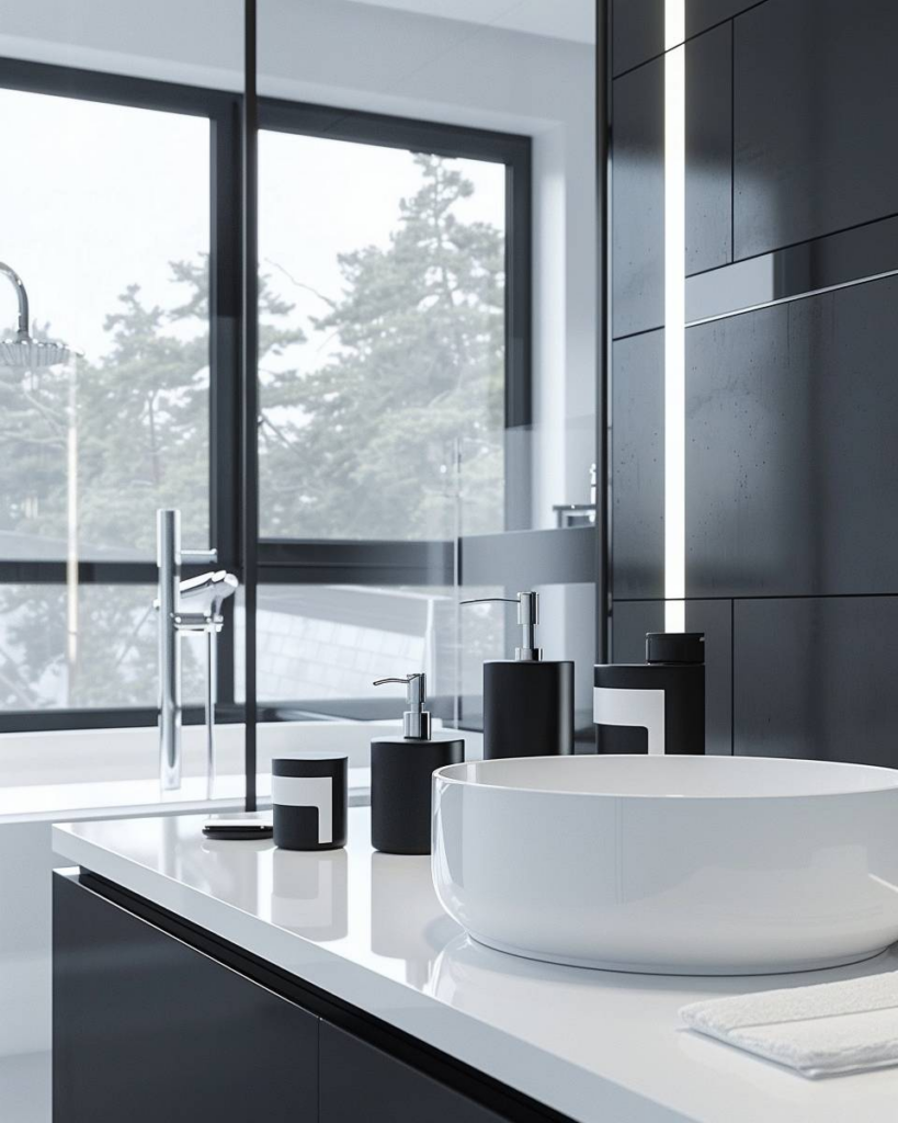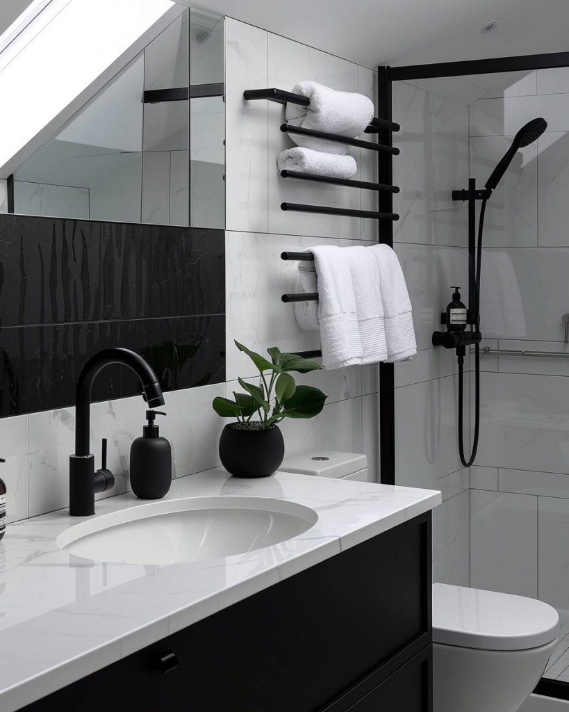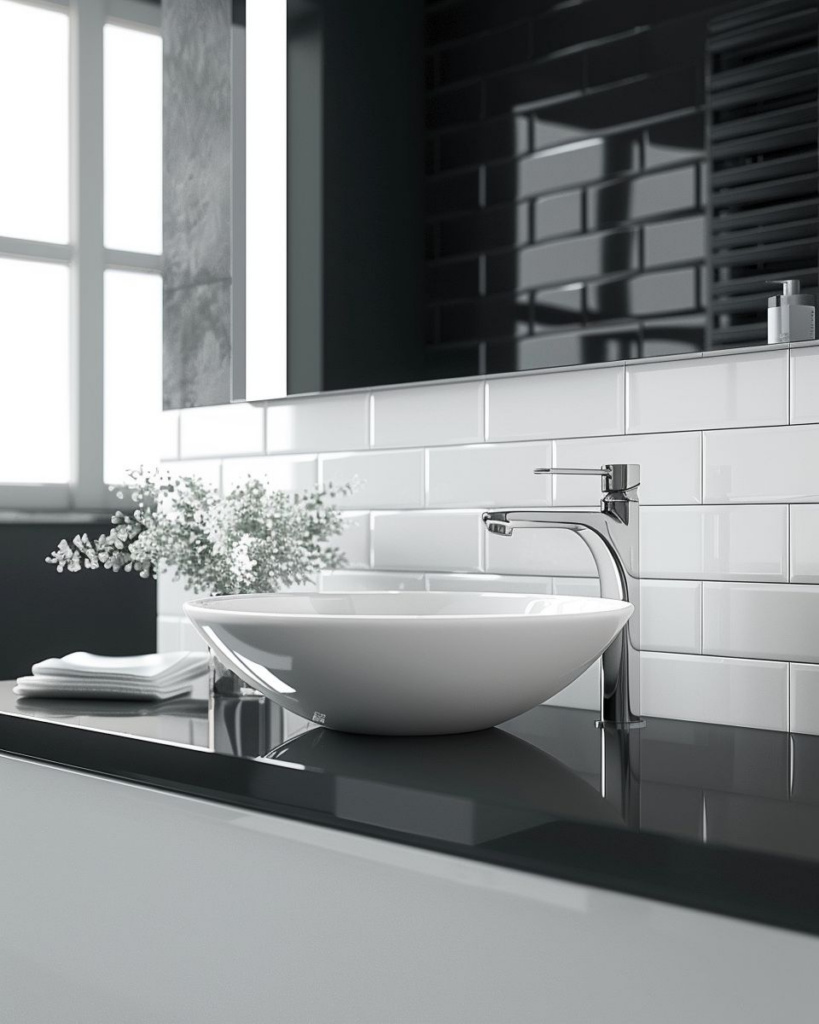 Ein schwarz-weißes Badezimmer ist zeitlos, stilvoll und bringt Klarheit in deinen Alltag.