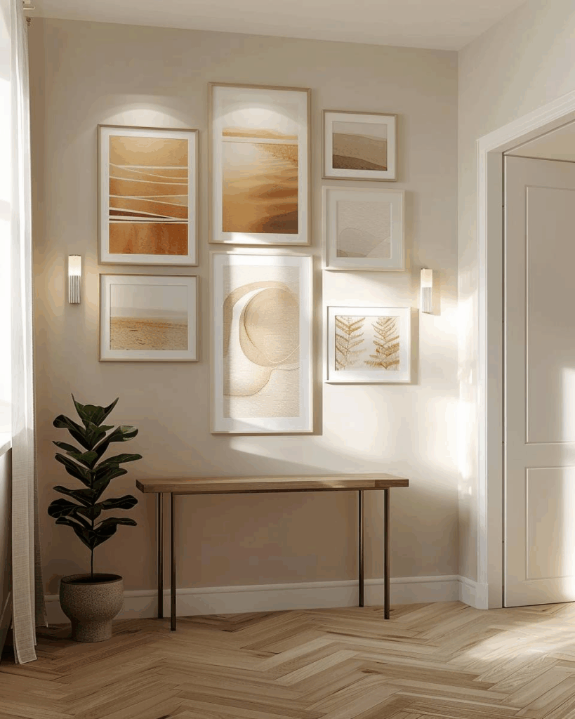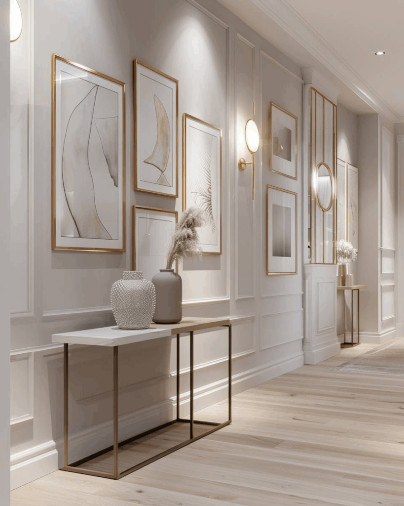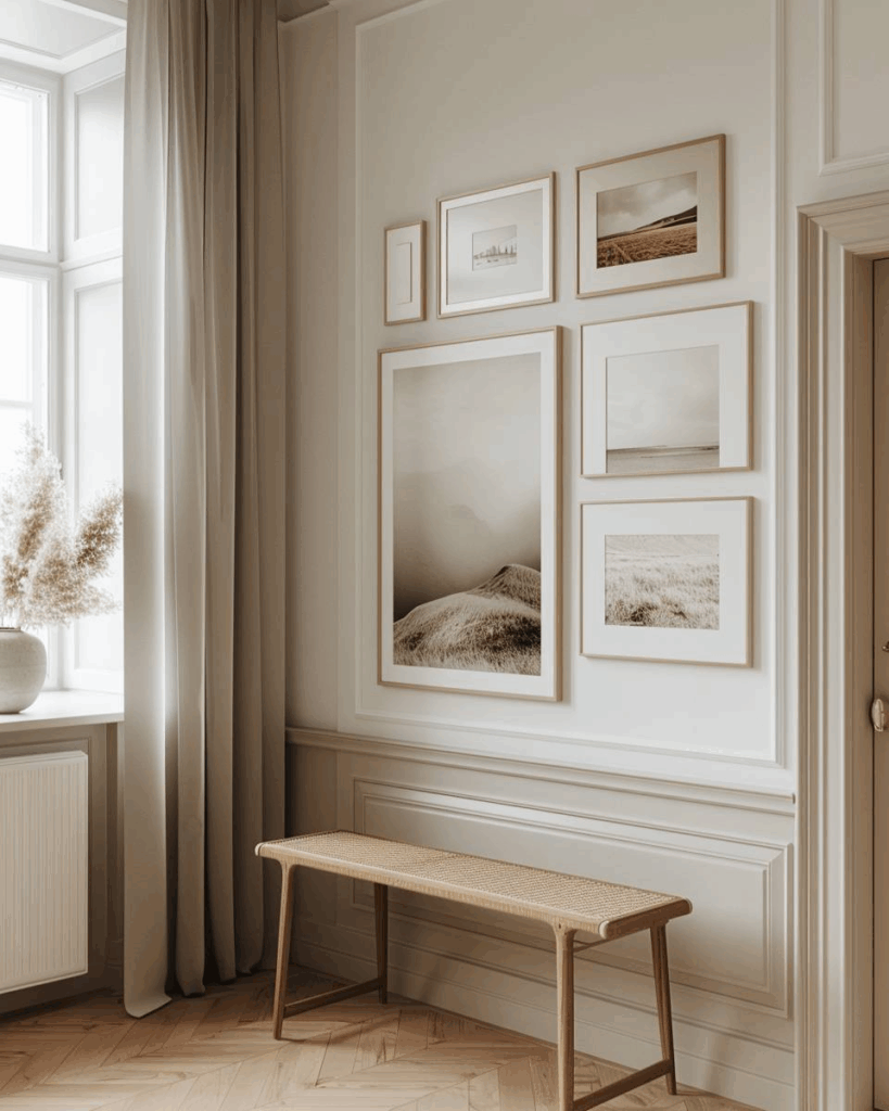 Eine Bilderwand im Flur macht deinen Eingangsbereich lebendig und verleiht ihm sofort Persönlichkeit.
