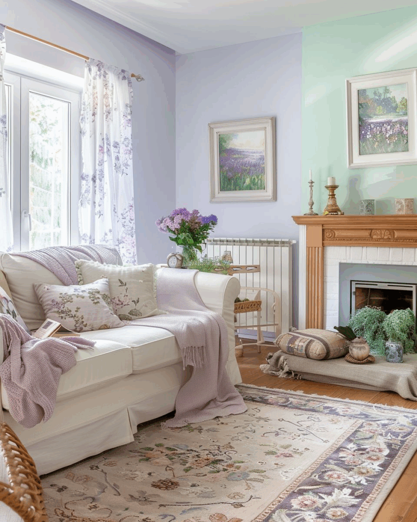 Bring florale Muster auf Kissen, Vorhänge oder Decken. Leinen und Baumwolle mit Rosen- oder Wiesenblumenmotiven machen dein Wohnzimmer weich und einladend. Wähle Pastellfarben oder gedeckte Töne wie Salbeigrün oder Altrosa. Kombiniere kleine Blüten mit schlichten Uni-Flächen, damit nichts überladen wirkt.