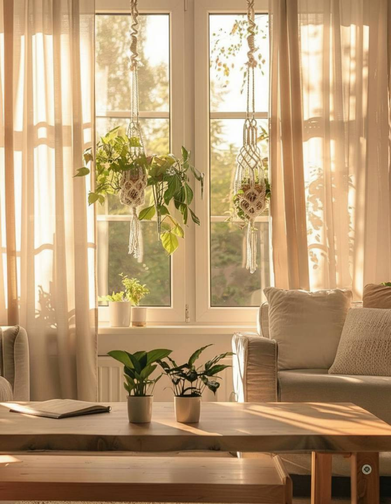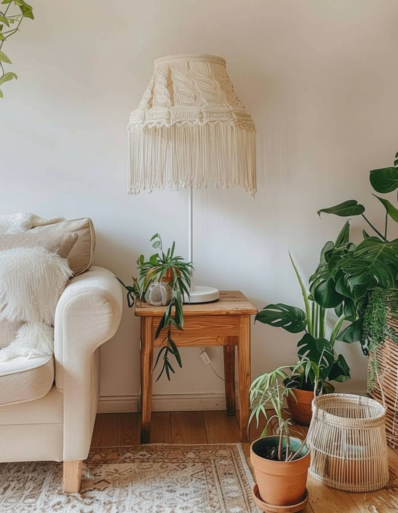 Pflanzen passen perfekt in Makramee-Blumenampeln. Wir wählen robuste Arten wie Efeutute oder Sukkulenten. Wir hängen die Ampeln dicht an Fenster. Du gießt sparsam, damit die Wurzeln trocken bleiben. Du bringst mit wenigen Handgriffen Leben und Struktur an leere Wände.