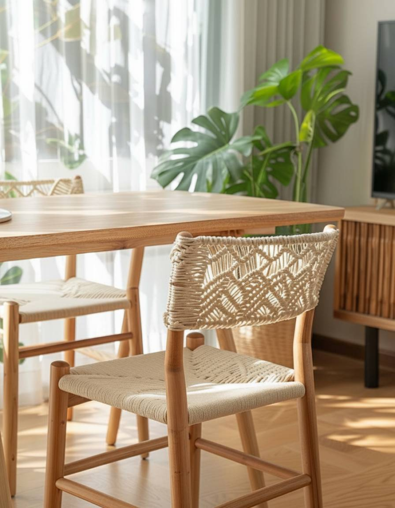 Gestalte deine Stühle mit Makramee-Kissenhüllen. Wähle starke Baumwollgarne, damit die Hüllen stabil bleiben. Lege die fertigen Kissenhüllen passgenau auf die Sitzfläche. Befestige sie sicher mit Bändern oder Klettverschlüssen. So schaffst du schnell einen gemütlichen und individuellen Sitzplatz.