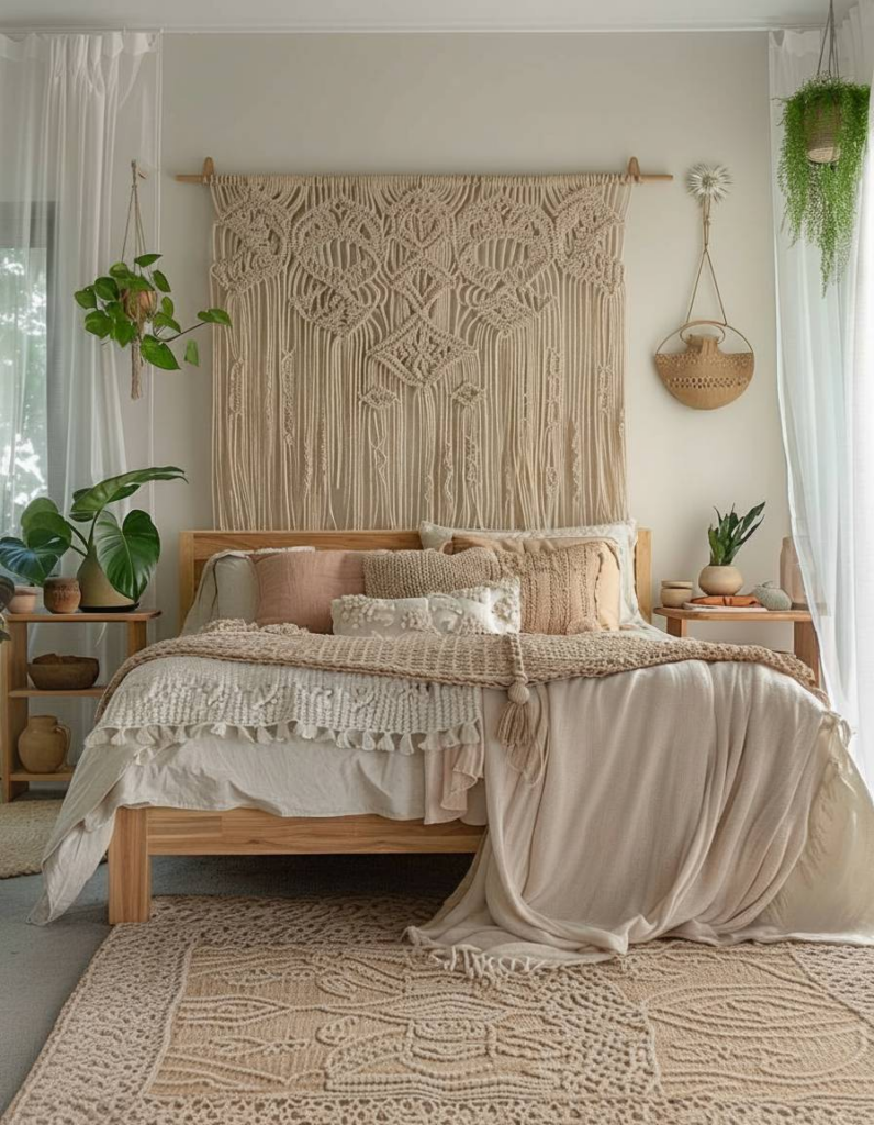 Verleihe deinem Schlafzimmer Boho-Charme durch Makramee-Kopfteile