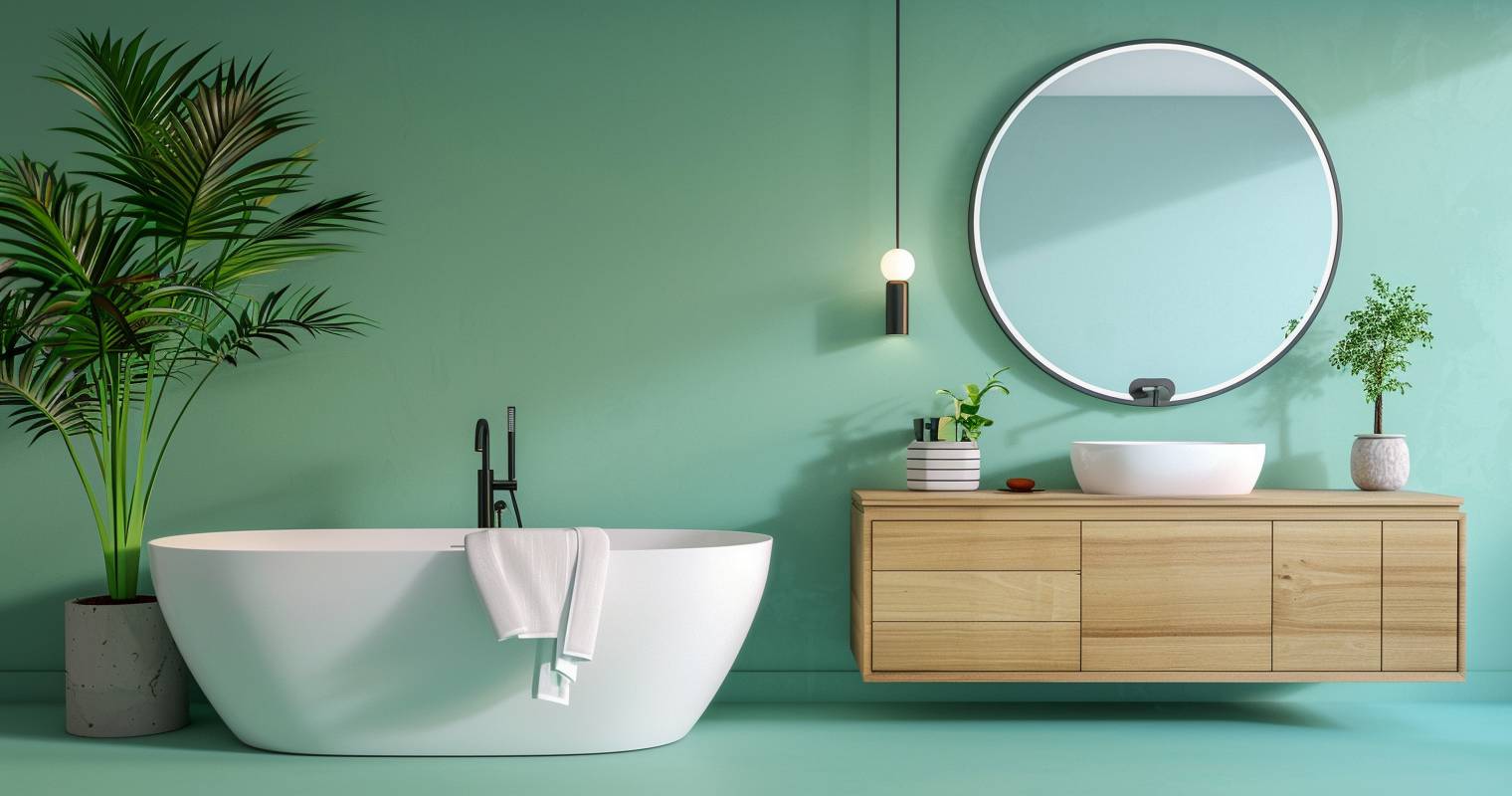 Halte Linien gerade und achte auf symmetrische Anordnung von Waschbecken, Armaturen und Spiegeln. Fliesen in einheitlichen Größen und Farben bringen Ruhe ins Design. Möbel mit klaren Kanten wirken modern und aufgeräumt. Verzichte auf verspielte Details und setze auf schlichte Formen. So bleibt dein Badezimmer stilvoll und wirkt größer.