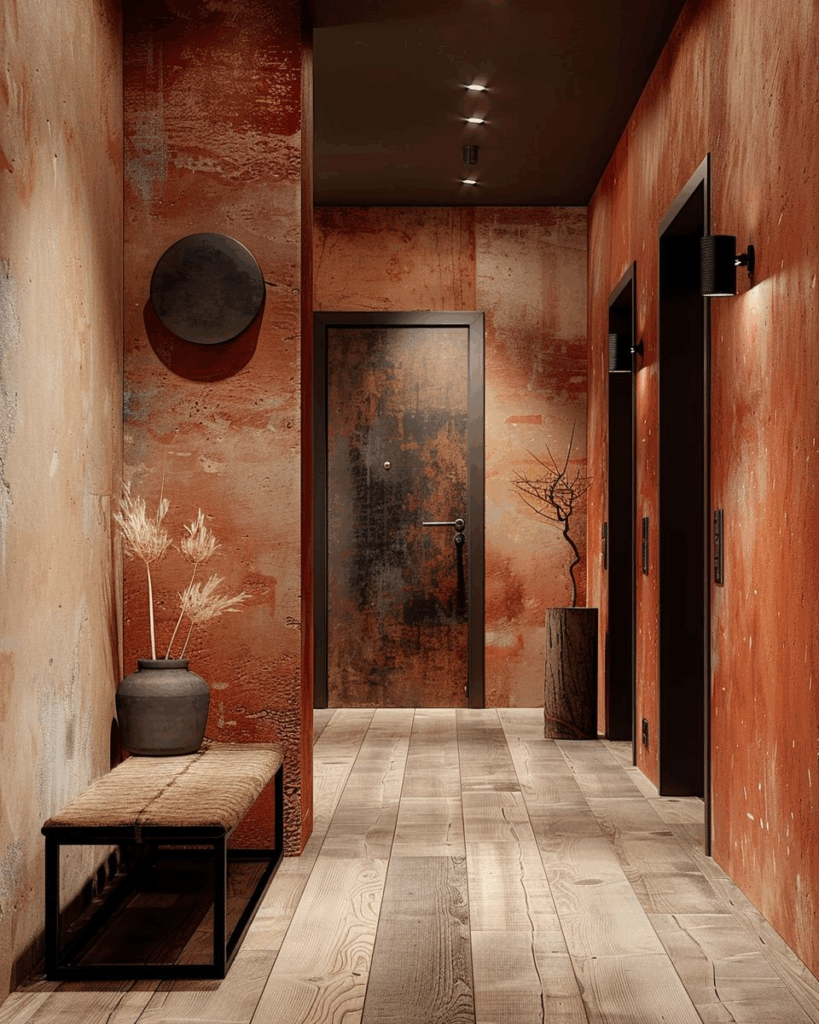 Probiere kräftige und ungewöhnliche Farbtöne wie Senfgelb, Petrol oder Terrakotta. Sie geben deinem Flur sofort Charakter. Kombiniere die Wandfarbe mit neutralen Möbeln wie Holz oder Schwarz. So wirkt der Look nicht überladen. Achte auf gute Beleuchtung, damit die Farbe nicht zu dunkel wirkt.