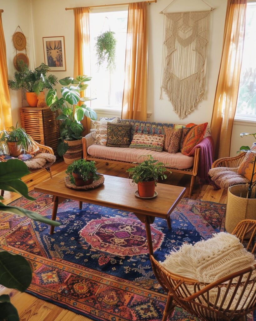 Ein Boho-Teppich bringt Farbe, Struktur und Persönlichkeit in dein Zuhause und macht jeden Raum sofort lebendiger.