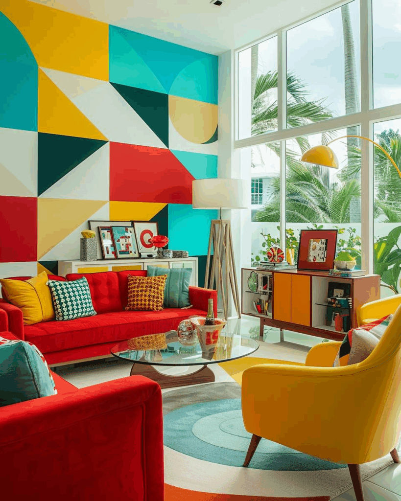 Wähle starke Farben wie Rot, Gelb oder Blau, um einzelne Möbel oder Accessoires zu betonen. Du lenkst damit den Blick gezielt auf diese Stücke. Eine bunte Wand oder ein knalliges Sofa pusht sofort den Pop-Art-Look in deiner Wohnung. Kombiniere klare Muster und geometrische Formen für mehr Wirkung.