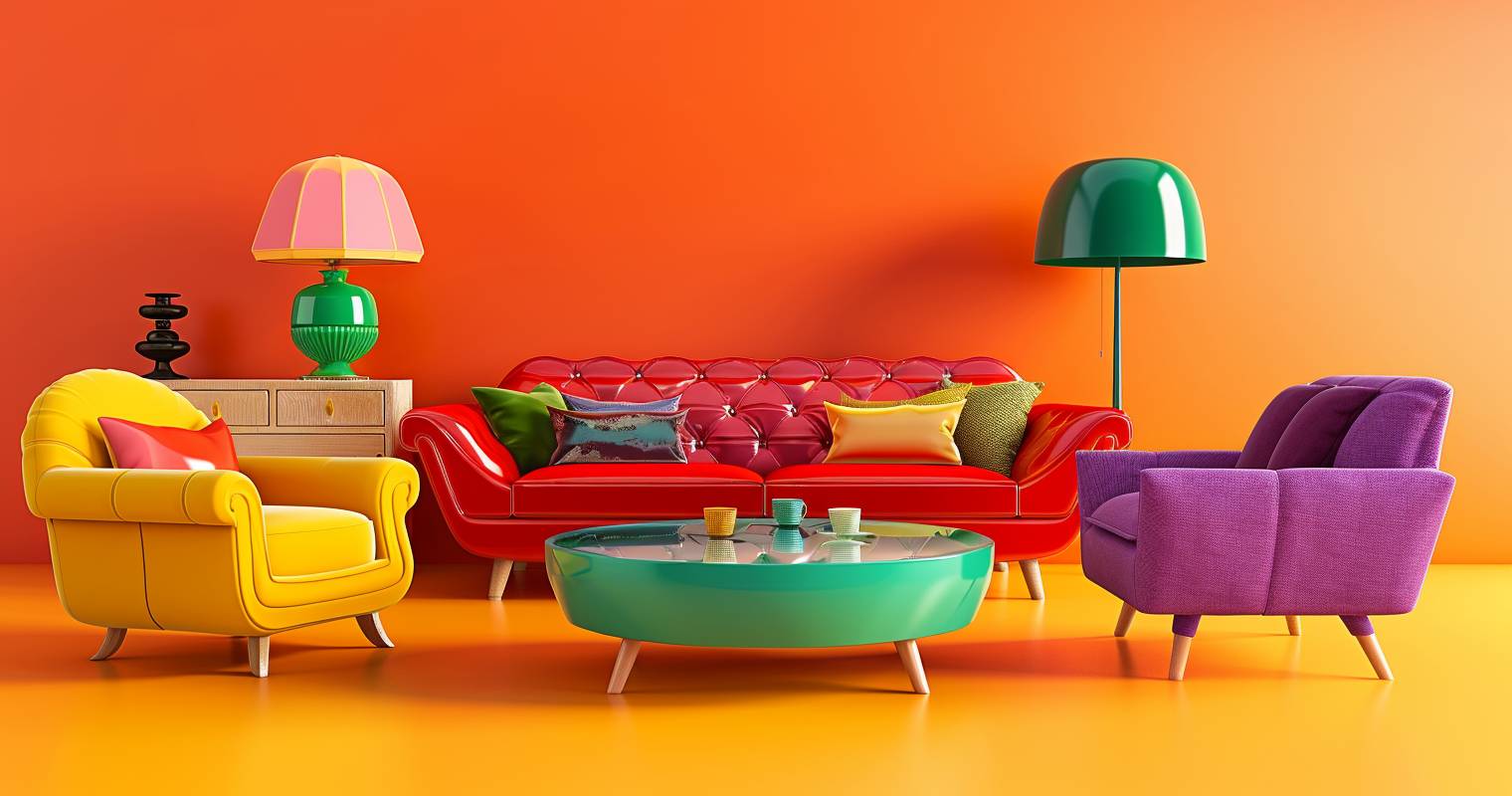 Wir kombinieren schlichte Möbel mit knalligen Kissen, Postern und Teppichen. Ein weißes Sofa ist die Basis. Wir setzen bunte Lampen oder Pop-Art-Bilder als Eyecatcher ein. Farbakzente holen das Pop-Art-Gefühl in dein Wohnzimmer.
