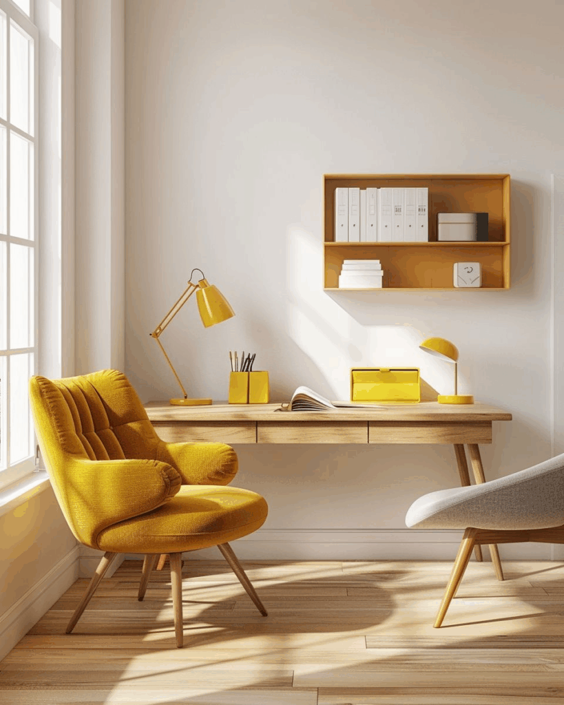 Baue senfgelbe Elemente in dein Homeoffice ein