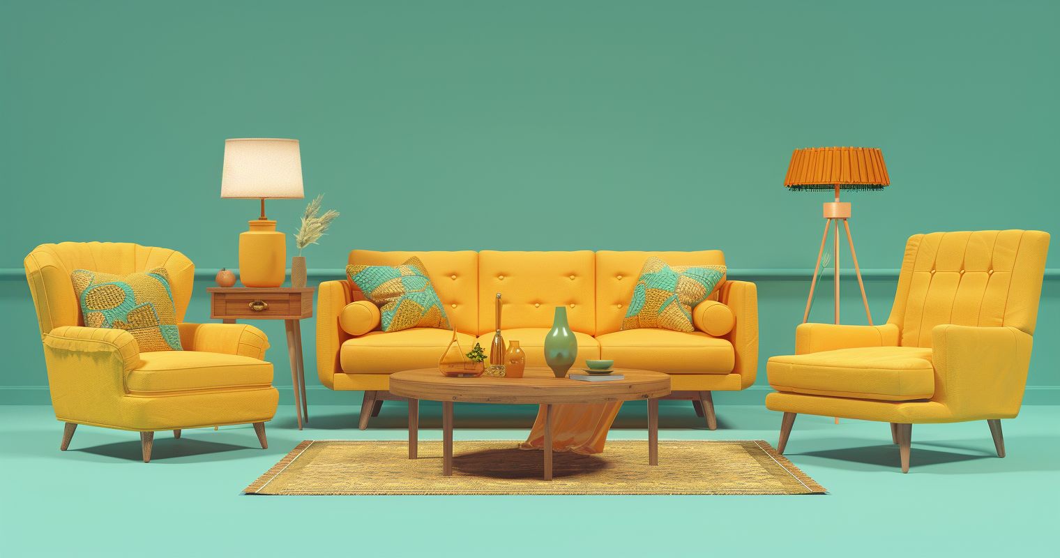 Einrichtung in Senfgelb-Kombiniere Senfgelb mit dunklem Petrolblau