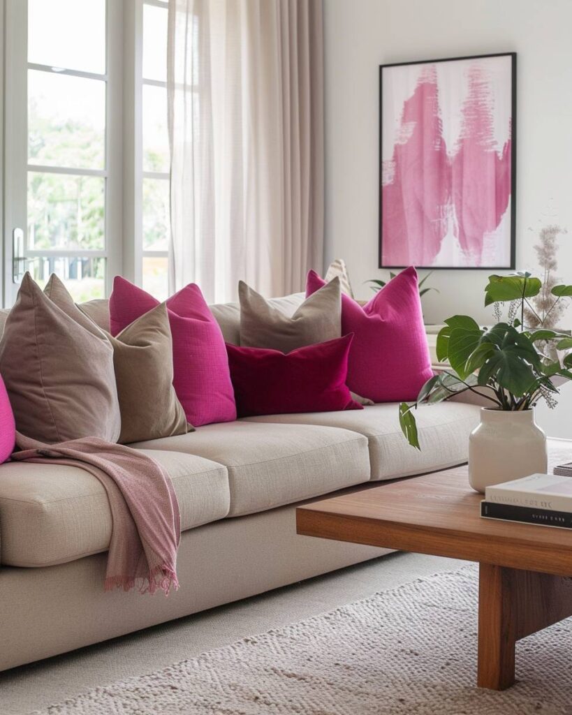 Setze Akzente mit fuchsiafarbenen Kissen
