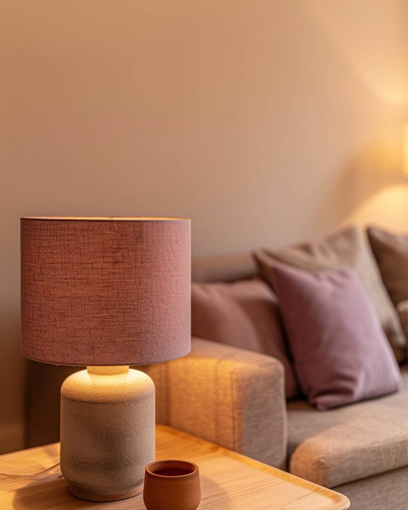 Tausche alte Lampenschirmbezüge gegen mauvefarbenen Stoff aus. Achte auf einen matten, leicht strukturierten Baumwollstoff. Textilkleber oder doppelseitiges Klebeband halten den Stoff sauber am Rahmen. Ein helles LED-Leuchtmittel lässt die Farbe weich leuchten. So wirkt dein Raum sofort ruhiger und stimmiger.