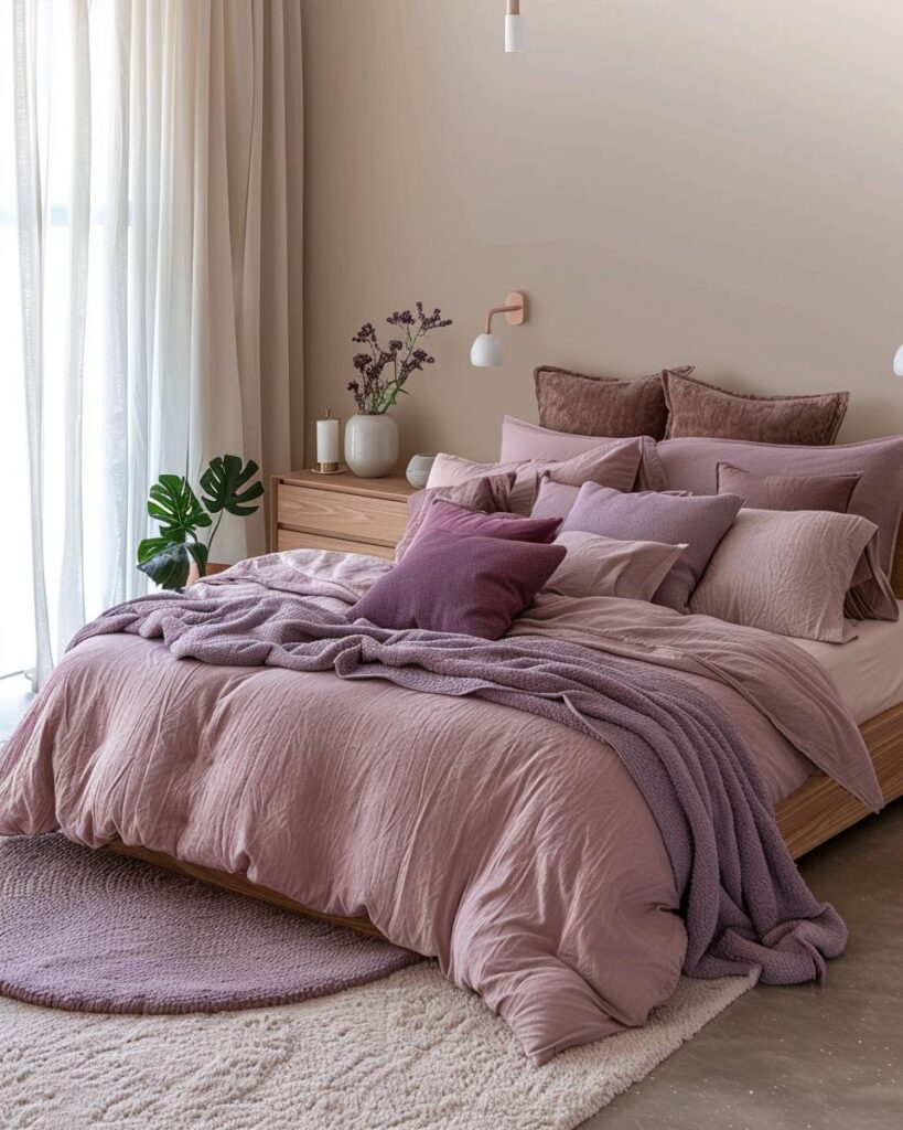 Gestalte dein Schlafzimmer mit mauvefarbener Bettwäsche