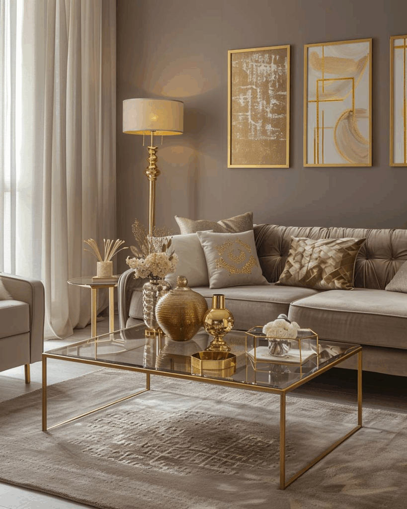 Verbinde Taupe mit Metallakzenten für Eleganz