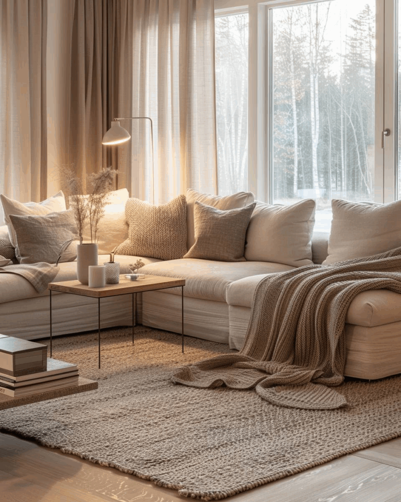 Verwende taupefarbene Teppiche für Gemütlichkeit