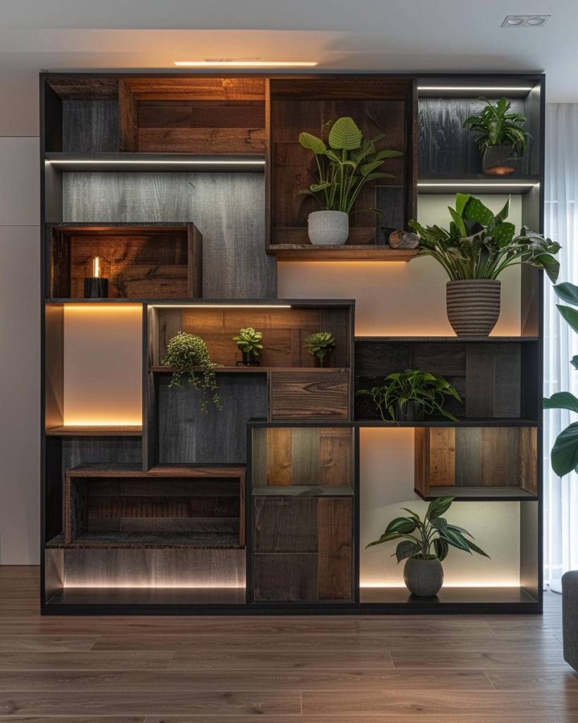 Gestalte Regale mit unterschiedlichen Holzstrukturen