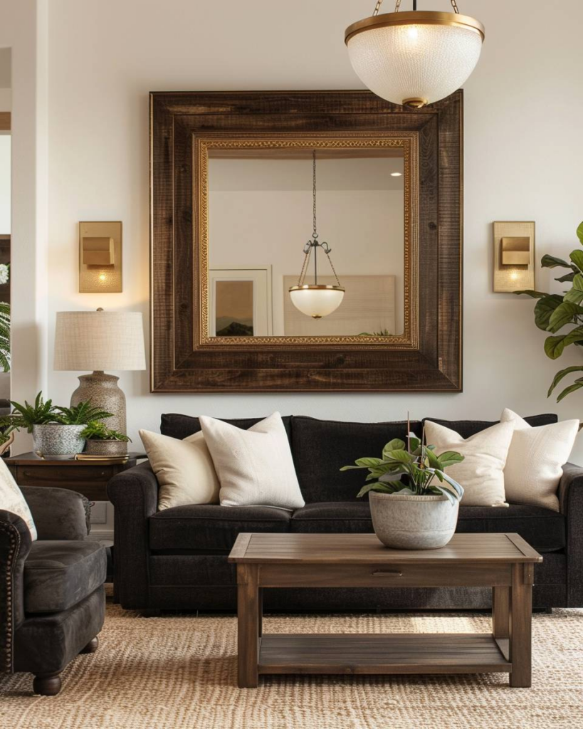 Bringe schwere Spiegel mit dickem Holzrahmen immer an einer tragfähigen Wand an. Wir nutzen Wandhaken mit hoher Tragkraft und sichere Dübel, damit der Spiegel fest sitzt. Prüfe, dass die Aufhängung gleichmäßig ist, damit nichts kippt. Richte den Spiegel so aus, dass er Licht reflektiert und dunkles Holz betont. Stabilität und sichere Montage sind entscheidend.