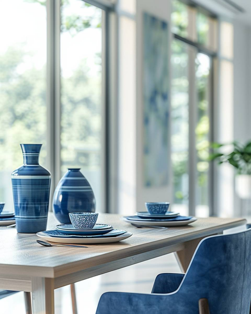 Blaue Keramik bringt frische Farbe auf deinen Esstisch. Wir wählen Teller, Schalen oder Vasen in verschiedenen Blautönen. Glasuren mit Mustern setzen starke Highlights. Blaues Geschirr wirkt modern und passt zu Holz oder Weiß. So bleibt unser Esszimmer lebendig und einladend.