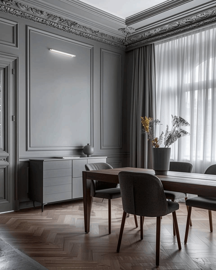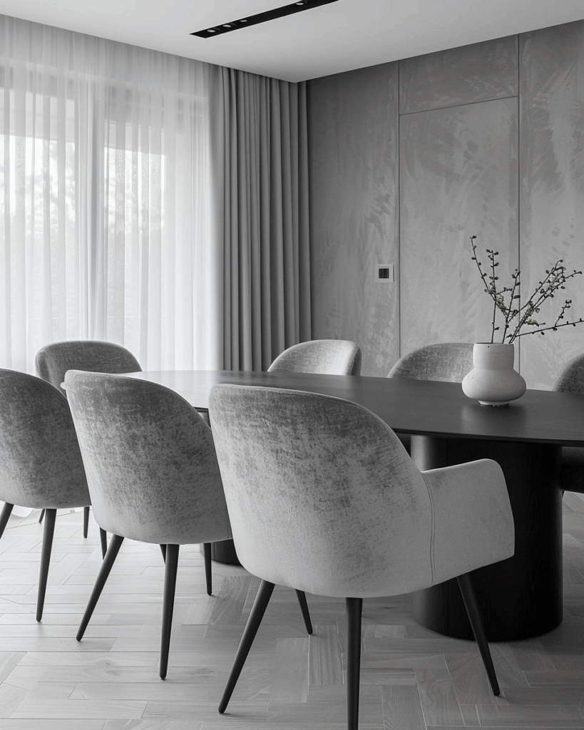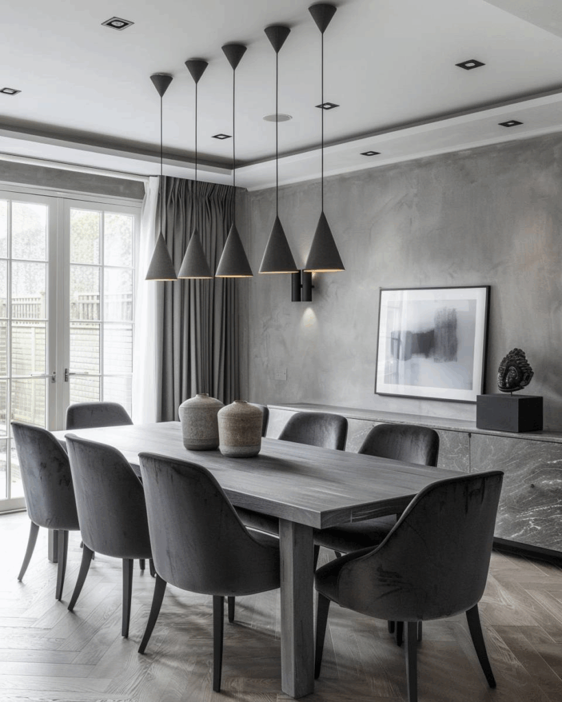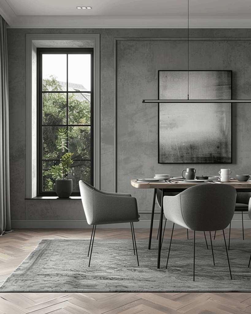 Esszimmer in Grau gestalten- Wähle unterschiedliche Grauschattierungen für Tiefe