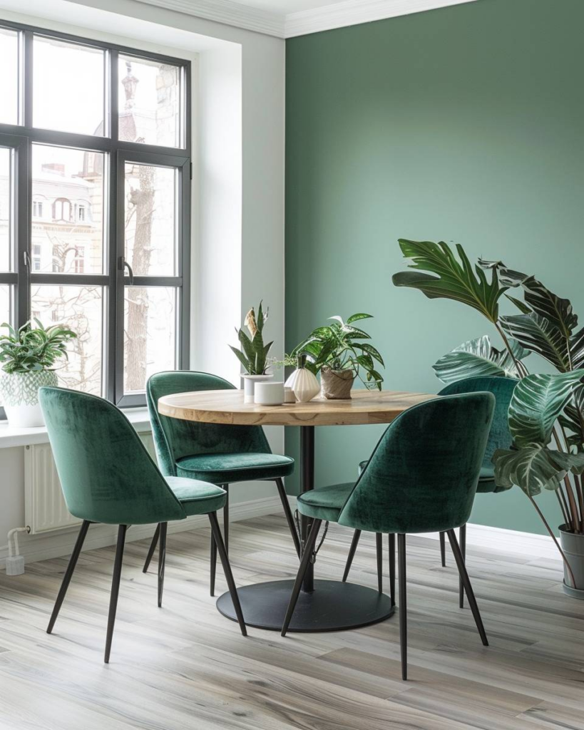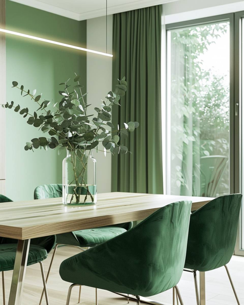 Ein Esszimmer in Grün gestalten ist eine der wirkungsvollsten Ideen, um frische Energie, Stil und Natürlichkeit beim Einrichten zu verbinden.