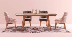 Stelle Stühle gleichmäßig an den Tisch. Eine symmetrische Anordnung schafft sofort Ruhe. Lass immer den gleichen Abstand zwischen den Stühlen. Halte den Tisch frei von Deko, damit du nichts störst. Nutze klare Linien und reduziere Farben für einen aufgeräumten Gesamteindruck.