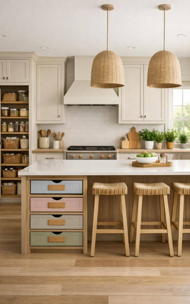 Ideen wie eine kindgerechte Spielecke, eine große Familien-Essinsel und eine beschreibbare Wand für Notizen helfen dir, eine Küche zu gestalten, die allen Generationen gerecht wird.