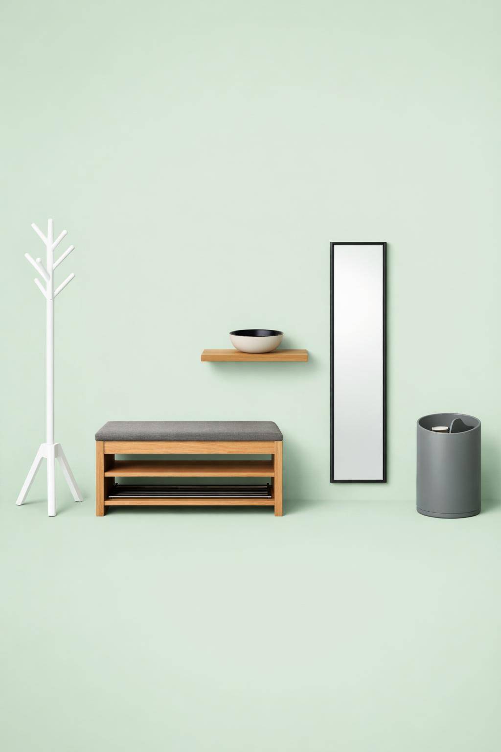 Nutze eine Sitzbank mit integriertem Schuhregal, um Platz zu sparen. Wähle ein Modell, das genug Stauraum für deine Schuhe bietet. Achte darauf, dass die Sitzfläche bequem und leicht zu reinigen ist. Platziere es direkt neben der Garderobe, um kurze Wege zu schaffen. So hältst du deinen Flur aufgeräumt und funktional.