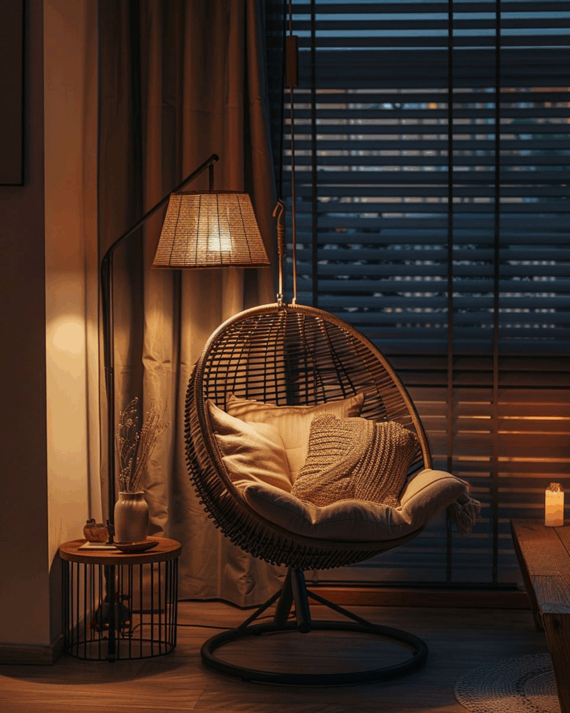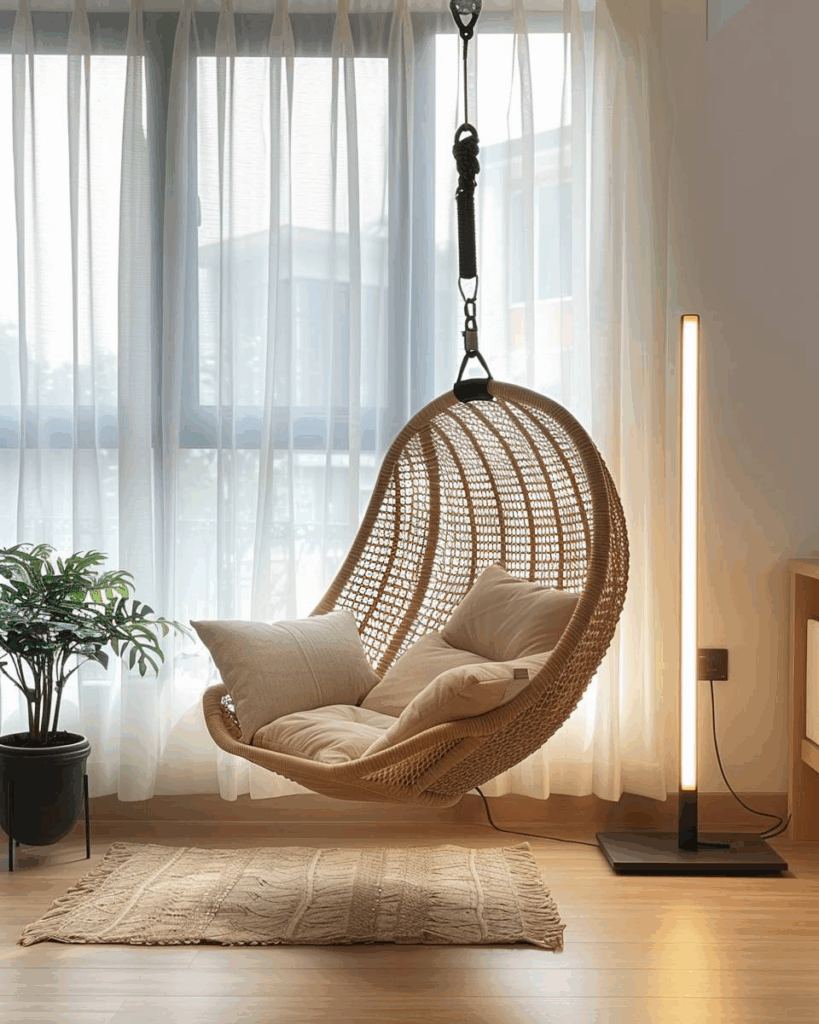 Ergänze dunkle Ecken mit einer Hängesessel-Installation