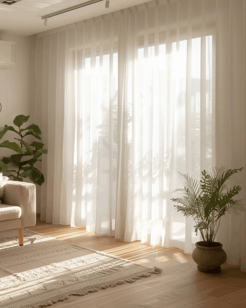 Lasse Tageslicht durch leichte Vorhänge einfließen