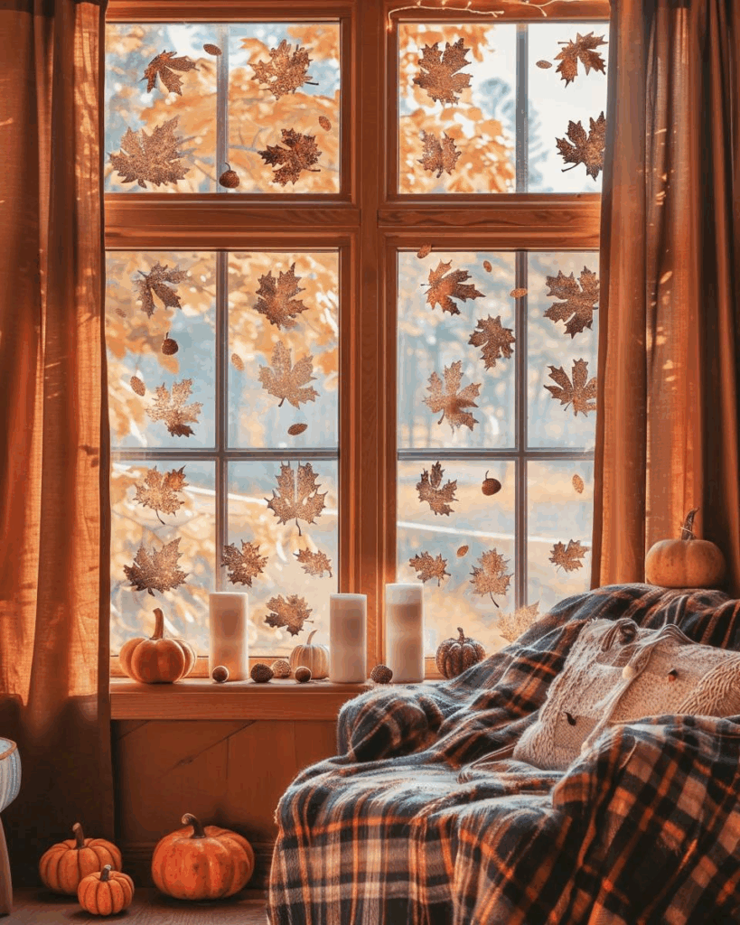 Schmücke Fensterrahmen mit herbstlichen Stickern