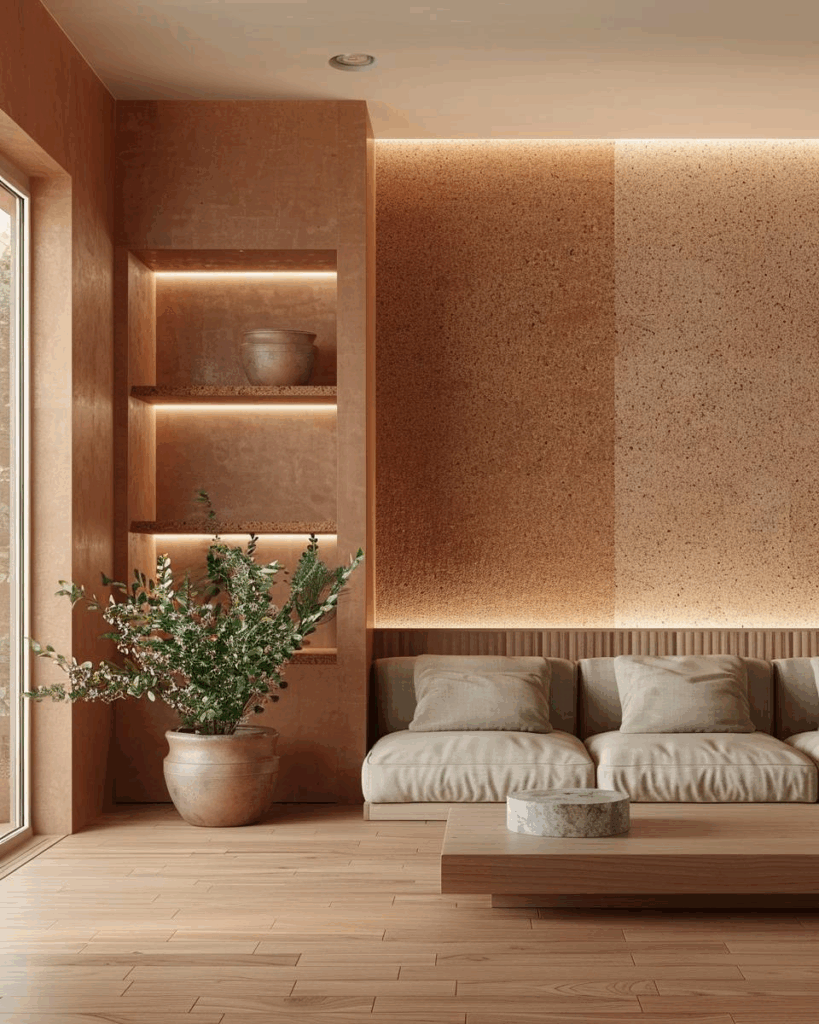 Kombiniere Korkfliesen mit warmen Wandfarben