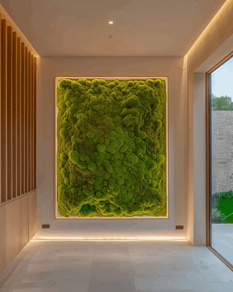 Setze auf Moosbilder für nachhaltige Frische. Rentiermoos und Kugelmoos sind konserviert, wartungsfrei und brauchen kein Gießen oder Licht. Akustik ist besser, und die Luft ist angenehmer durch natürlichen Feuchteausgleich. Plane Maße und montiere leichte, zertifizierte Paneele in Flur, Büro oder Wohnzimmer.