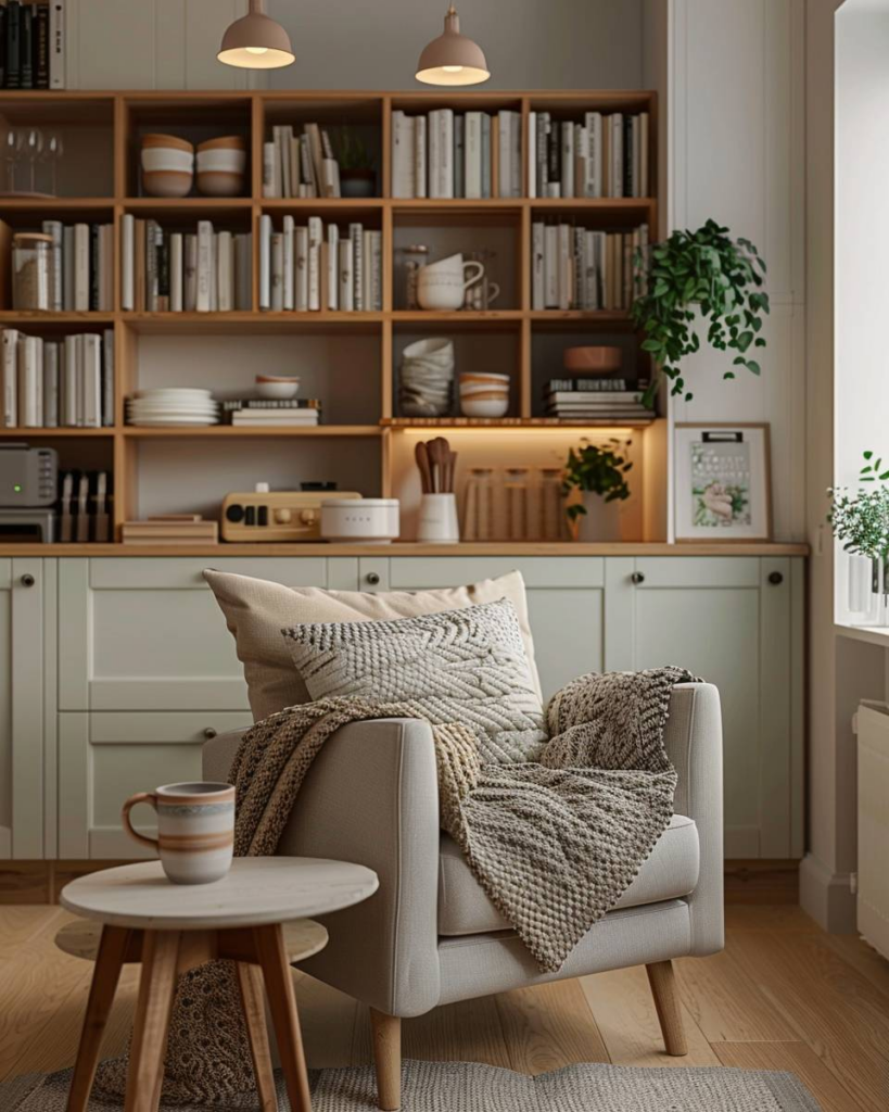 Schaffe eine kleine Leseecke mit Kochbüchern