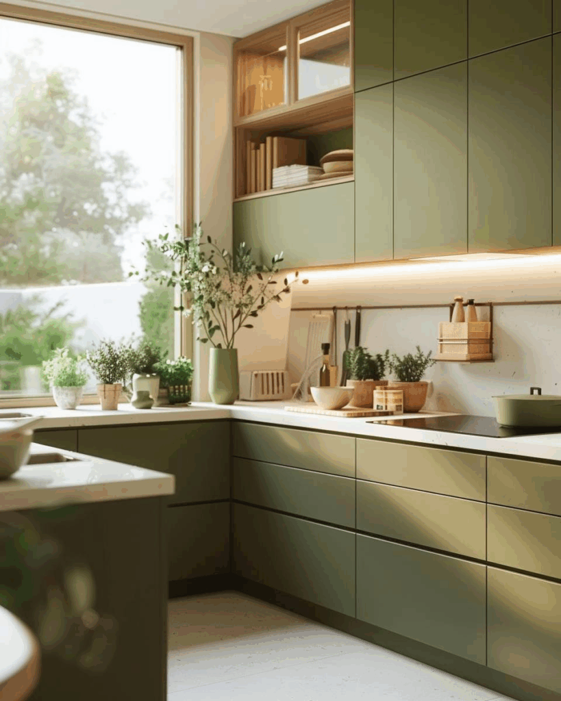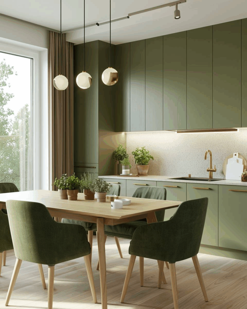 Eine Küche in Olivgrün gestalten ist die perfekte Wahl, wenn du Gemütlichkeit, Moderne und Naturverbundenheit in deinem Zuhause verbinden willst.