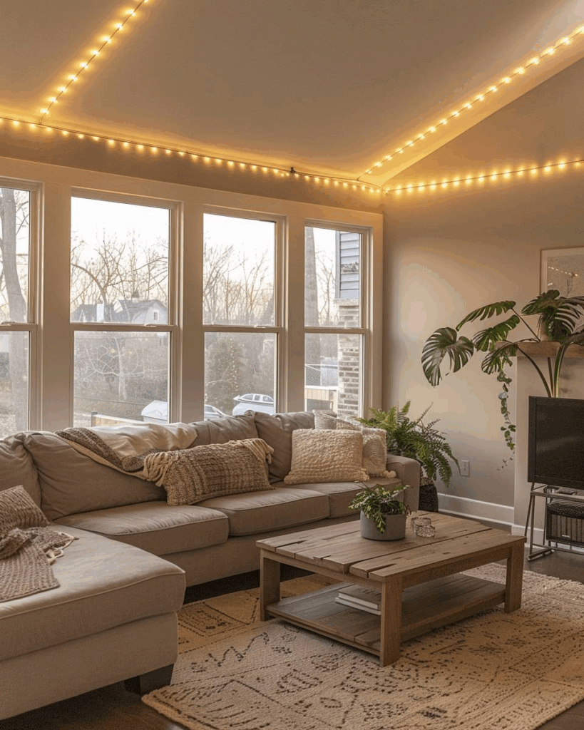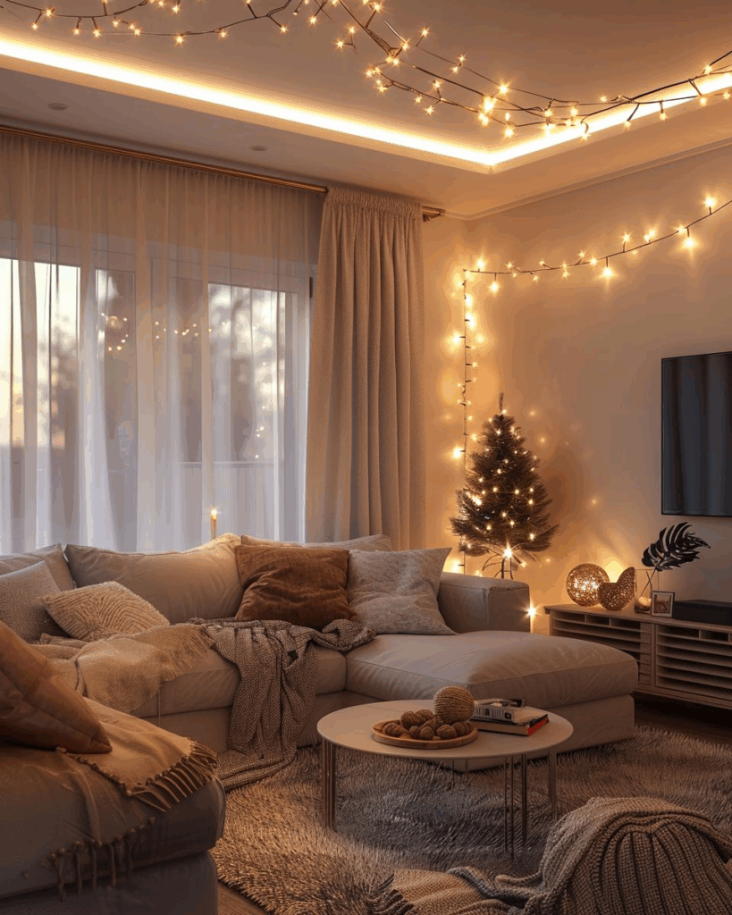 Lichterketten im Wohnzimmer gestalten eine gemütliche Atmosphäre und bringen neue Inspiration ins Einrichten.