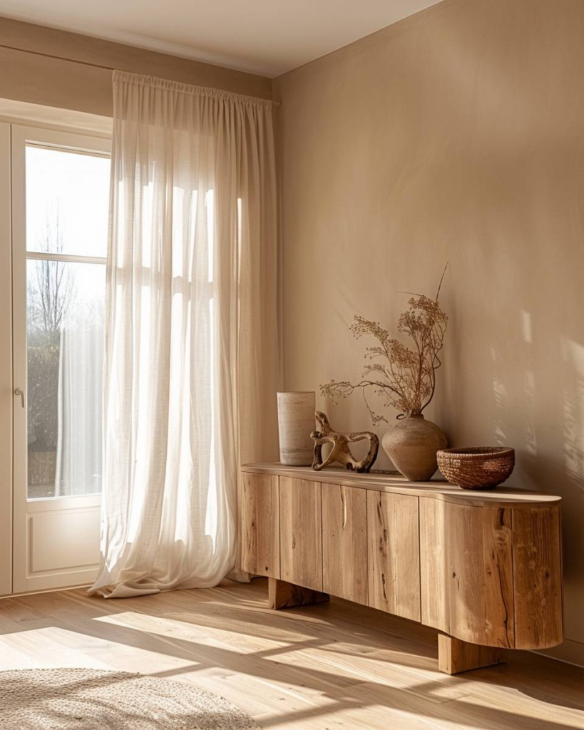 Bringe dein Sideboard mit Treibholz-Accessoires auf ein neues Level. Wir setzen gezielt Schalen, Kerzenhalter oder Skulpturen ein. Das Treibholz bringt Struktur und einen natürlichen Look in dein Wohnzimmer. Platziere die Stücke locker, damit alles leicht wirkt. Kombiniere sie mit klaren Glasvasen oder Pflanzen.