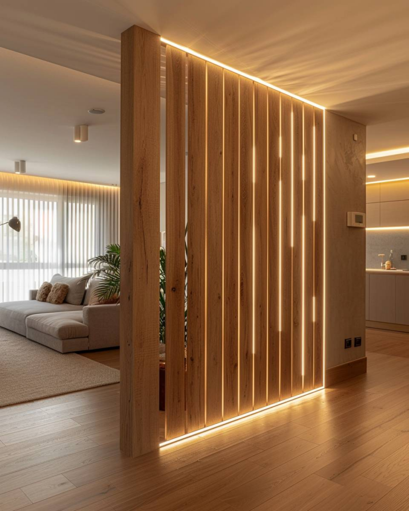 Nutze Holzelemente als Raumteiler