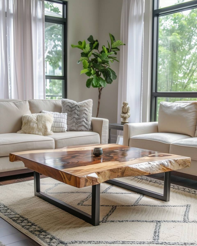 Edle Couchtische mit schöner Holzmaserung bringen natürliche Wärme und stilvolle Akzente ins Wohnzimmer. Wir kombinieren diese Tische gerne mit schlichten Sofas und verwenden dezente Dekos, damit die Holzstruktur wirkt. Eine minimalistische Umgebung betont die lebendige Maserung und schafft echte Wohlfühlatmosphäre.