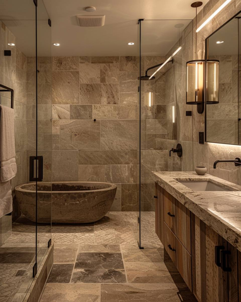 Wähle warme Natursteinfliesen für den Boden