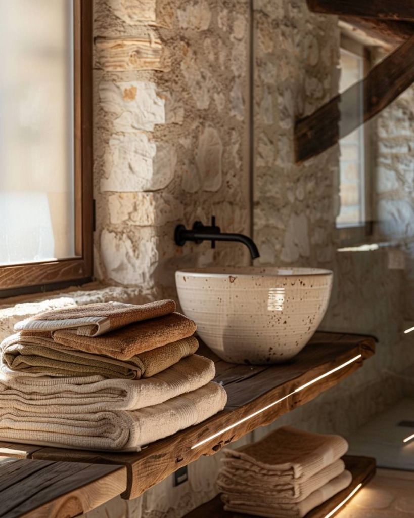 Verwende Handtücher in natürlichen Erdtönen