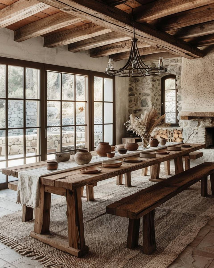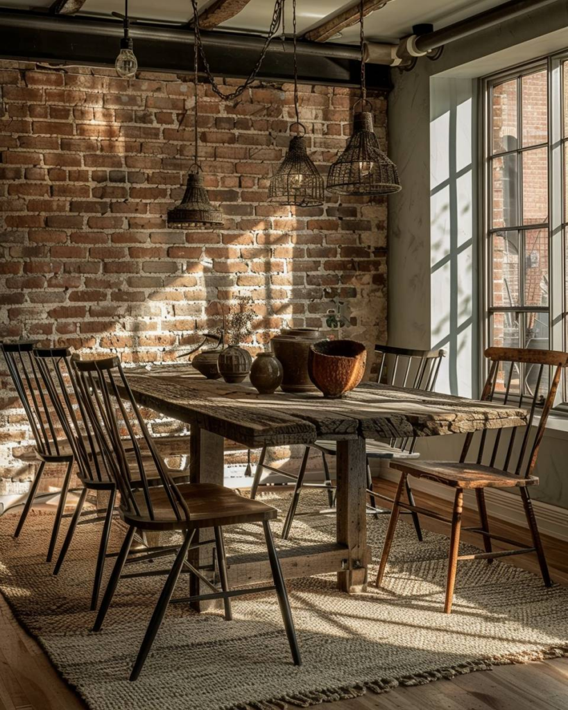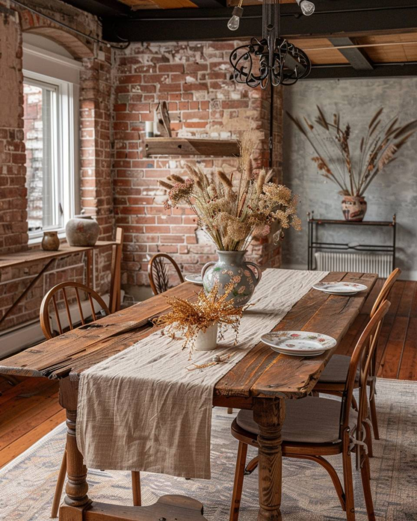 Ein rustikales Esszimmer ist gemütlich und bringt Landhaus-Flair direkt zu dir nach Hause.