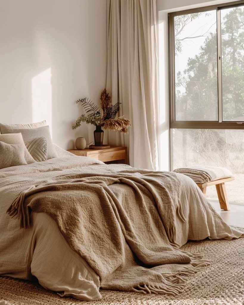 Arbeite mit kuscheligen Wolldecken in Erdtönen