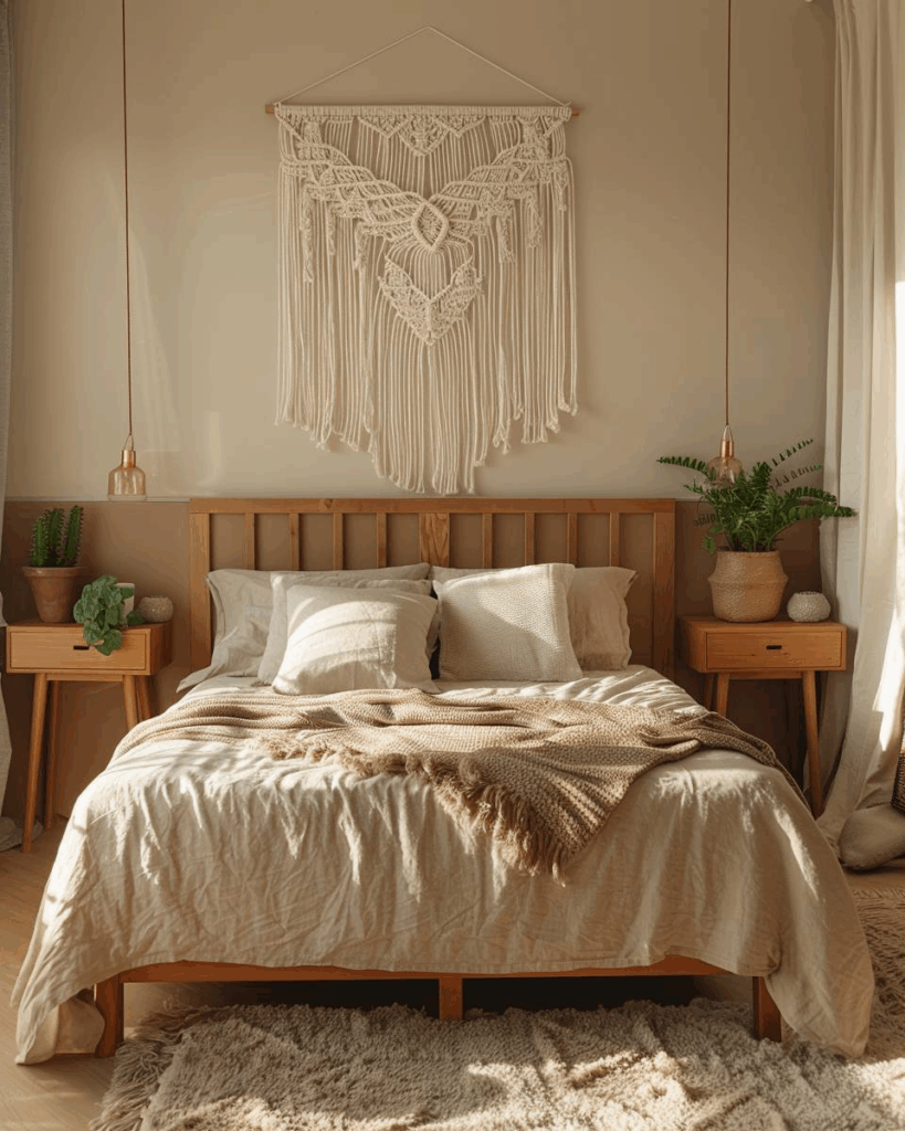 Hänge Makramee-Wanddeko über dein Bett