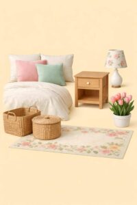 Setze metallische Highlights, um deinem schwarzen Schlafzimmer Glanz zu verleihen. Silberne Lampen oder goldene Bilderrahmen bringen Leben in dunkle Ecken. Ein kupferfarbener Teppich reflektiert das Licht und macht den Raum wärmer. Dabei ist es wichtig, dass du die Balance hältst: Zu viele Metalle können überwältigend wirken. Ein oder zwei ausgewählte Stücke sind perfekt, um einen edlen Touch zu erzielen.