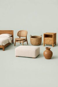 Setze samtene Stoffe ein, um deinem Schlafzimmer Luxus zu verleihen. Samt strahlt Eleganz aus und fühlt sich angenehm an. Ein samtenes Kopfteil oder Überwürfe machen das Bett sofort zum Blickfang. Wähle dunkle Farben, um Tiefe zu erzeugen und den luxuriösen Effekt zu verstärken.