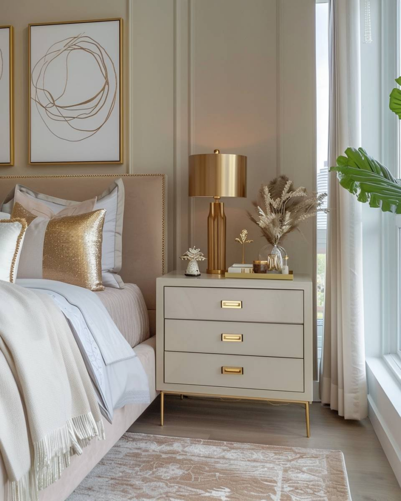 Verziere den Nachttisch mit goldenen Griffen